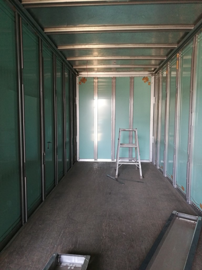 内貼りしてあったベニヤを外し、中が結構スカスカになっていた発泡スチロールを取り外し、改めて断熱材(スタイロフォーム)をいれます。
