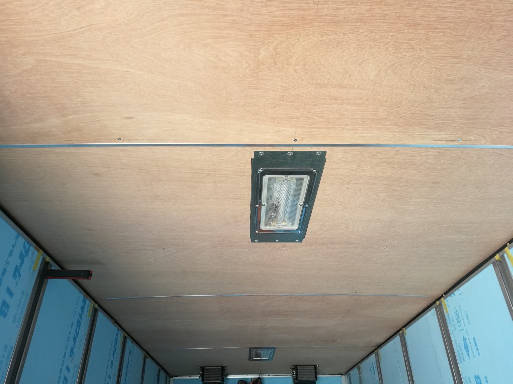 天井のベニアを取り付けました。